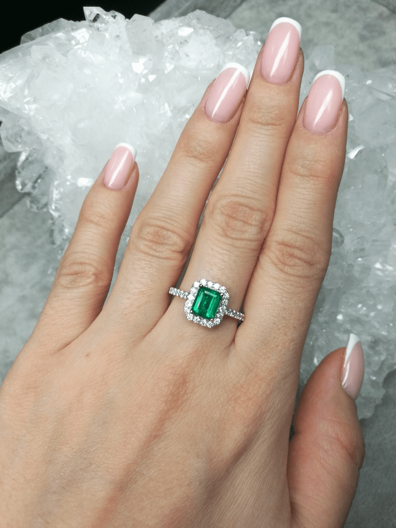 Зокрема, обручка з діамантами та смарагдом відрізняється особливою чистотою та сяйвом. Дані вставки забезпечують палітру, яку складають відтінки зеленого, жовтого, салатового та сірого кольорів.