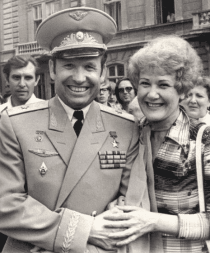 Неллі Харченко та льотчик-космонавт Г.С. Шонін (фото із сайту www.telekompaschka.de)